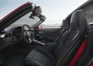 Los genes GTS también dan forma al interior. El reloj cronómetro del Paquete Sport Chrono está integrado en la parte central del panel frontal. La aplicación o app Porsche Track Precision, ha sido mejorada especialmente para coincidir con el lanzamiento al mercado de los variantes GTS. Entre sus características se incluye la grabación automática, una pantalla con todos los detalles y la posibilidad de ver el análisis de los datos de conducción del auto, en un smartphone. Los asientos de los GTS están tapizados en Alcantara y tienen un nuevo tipo de costuras. Los asientos Sport Plus con el logotipo GTS en las cabeceras, pueden ser regulados eléctricamente en cuatro posiciones y proporcionan mayor comodidad y mejor apoyo lateral. Otros elementos distintivos son embellecedores de aluminio con covertura anodizada y pulido en color negro en el panel de instrumentos, así como el uso intensivo del Alcantara, que se puede encontrar, por ejemplo, en el volante, la consola central y las cabeceras de los asientos.