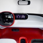 Los asientos cuentan con una estructura base hecha de materiales ecosostenibles, y los respaldos y reposacabezas se pueden reemplazar fácilmente para cambiar sus colores y materiales. El asiento del pasajero delantero puede incluso sustituirse por una caja portaobjetos o un asiento para niños. Los asientos traseros consisten en un banco retráctil y un respaldo que gira para transformarse en «maletero» con una capacidad de carga extraordinaria. ![]()