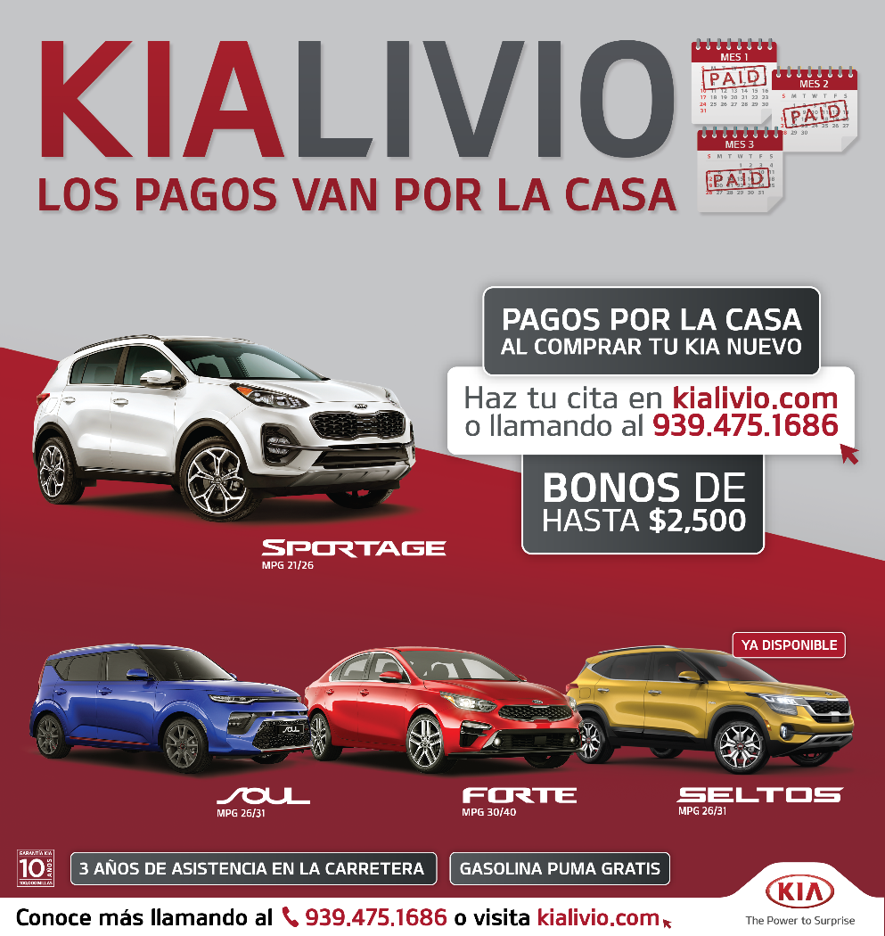 Con el propósito de brindarles un alivio a aquellos que están en la búsqueda de un auto nuevo, la red de concesionarios Kia en Puerto Rico lanzó su oferta KIALIVIO, la cual durante todo el mes de junio ofrece a los clientes la oportunidad de llevarse una unidad nueva con los pagos de los primeros meses por la casa.