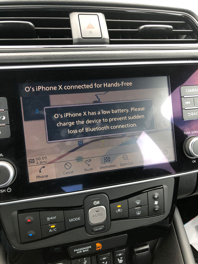 Debido a que el auto regenera batería cuando está en bajada, al llegar a Salinas ya habíamos recuperado 2% de carga por lo cual contábamos con 53% de batería. Después de varias vueltas para tomar fotos y videos en el área, regresamos al área metro con 29% de batería y llegamos a nuestro destino en Guaynabo con 7%, lo suficiente para recorrer 17 millas más (o 27.36 km). Al día siguiente entregamos el auto con 4% de carga y una alerta encendida que decía «Charge now».