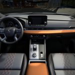 Un panel de instrumentos lineal con un poderoso tono horizontal le da al vehículo un aspecto holgado y espacioso a la vez que produce una forma funcional para que sea fácil ver los cambios en la posición del vehículo. La parte superior está cubierta con un suave acolchado envuelto en piel y se han aplicado costuras para proyectar una sensación de alta calidad. Los paneles de las puertas cuentan con una gran área de inserciones de puertas y el mismo acolchado suave que el panel de instrumentos y los lados de la consola del piso, con el objetivo de crear un espacio cómodo y de alta calidad.