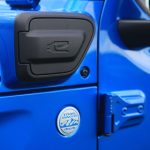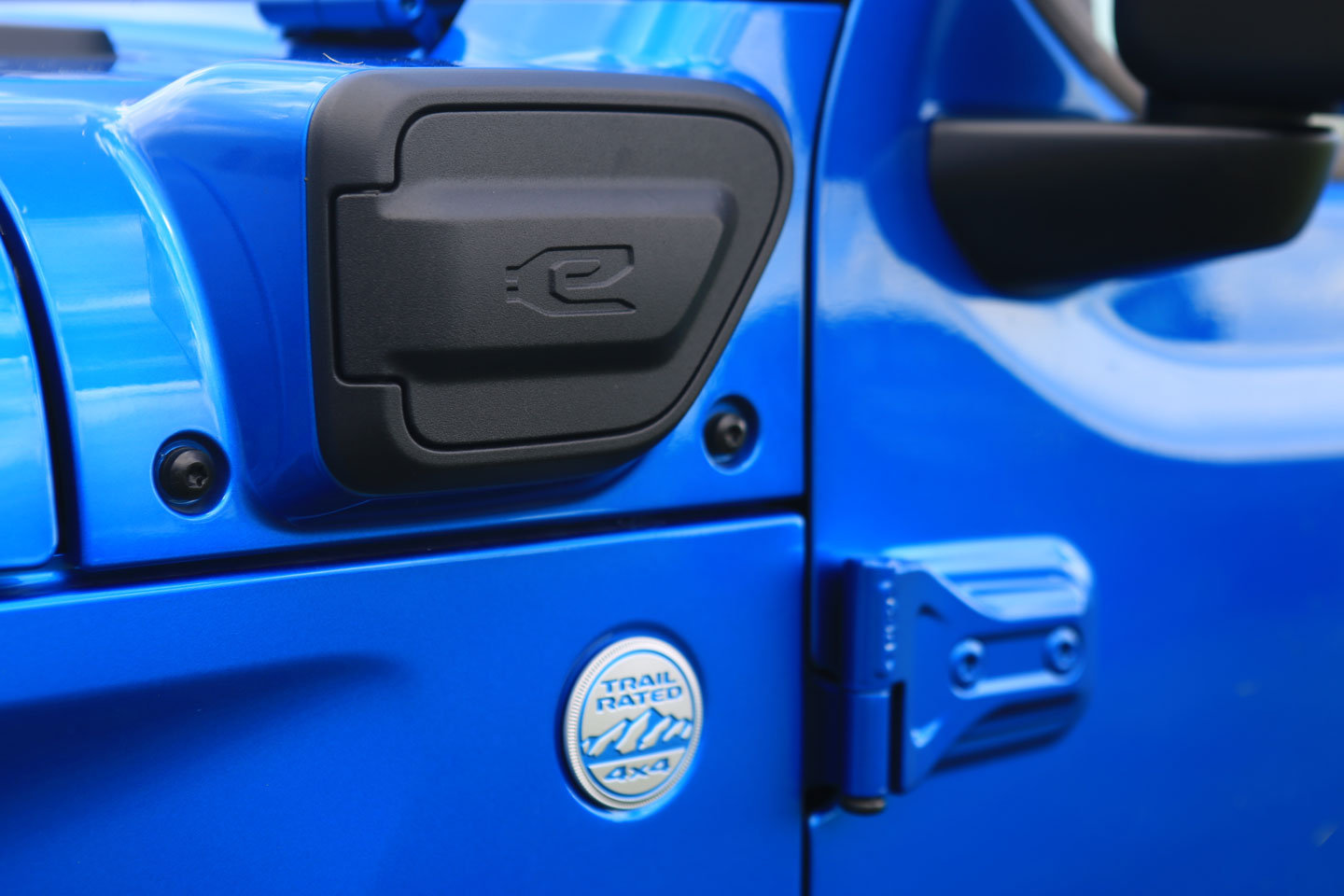 Estéticamente, el Wrangler 4xe, mantiene el diseño icónico y legendario que le ha dado el favor del consumidor por los pasados 80 años, pero añadiendo detalles en azul, tanto en el exterior como en el interior. Como todo Wrangler, este mantiene la clasificación Trail Rated, lo que significa que mantiene intacta su legendaria capacidad 4×4 de manejo en cualquier terreno. Para esto, cuenta con ganchos de remolque, gomas de 33” todo terreno en el modelo Rubicon, para mayor tracción, así como capacidad de manejo para sobrepasar hasta 30” de agua.
