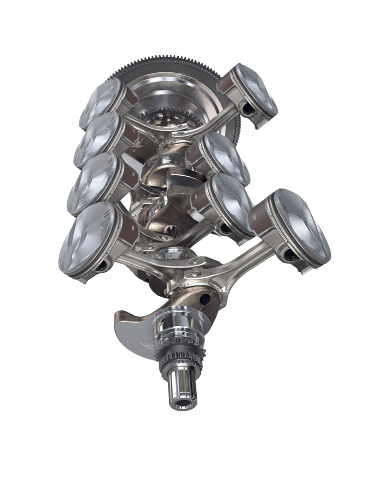 La clave para la capacidad de rendimiento del LT6 es un conjunto giratorio liviano y de baja inercia fijado en un cigüeñal plano completamente nuevo que, junto con una carrera comparativamente corta (la distancia que recorre cada conjunto de pistón/biela en cada rotación del cigüeñal), permite que el motor acelere a su máximo rango.
