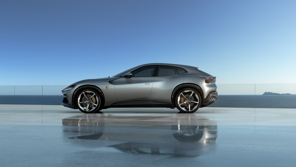 Para poder alcanzar los ambiciosos objetivos fijados para este proyecto y crear un carro digno de incluirse en la gama, se adoptó una disposición completamente diferente y unas proporciones innovadoras en comparación con los típicos GTs modernos (los llamados crossover y SUV), donde el motor va montado en la parte delantera del carro, casi a horcajadas sobre el eje delantero, con la caja de cambios acoplada directamente a él. Esto suele implicar una distribución del peso menos óptima que proporciona una dinámica y un placer de manejo más alejados de los estándares de excelencia a los que se han acostumbrado los clientes y entusiastas del Cavallino Rampante.