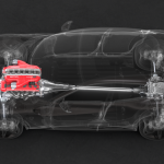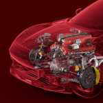 El Purosangue, a diferencia, monta un motor en la parte delantera con la caja de cambios en la parte trasera para crear una disposición deportiva transeje. La unidad de transferencia de potencia (PTU) está acoplada delante del motor para proporcionar una transmisión 4×4 única. Esto proporciona exactamente la distribución de peso 49:51% que los ingenieros de Maranello consideran óptima para un deportivo con motor delantero central.
