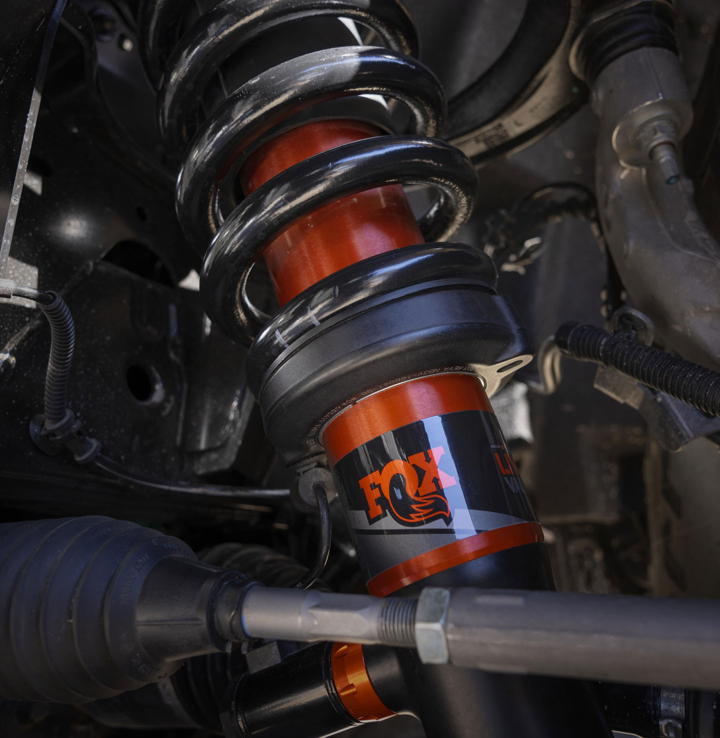 El equipo de Ford Performance colaboró con FOX™ para mejorar el sistema de suspensión de estabilidad todoterreno de alto rendimiento (HOSS, en inglés) con tecnología adaptativa Live Valve. Al igual que el diseño de amortiguación progresiva de la F-150 Raptor, el sistema HOSS 4.0 de la Bronco Raptor cuenta con amortiguadores semiactivos FOX 3.1 con Internal Bypass (de 3.1 pulgadas de diámetro) que están ajustados individualmente en la parte delantera y trasera, además de contar con depósito de reserva de fluido integrados en la parte delantera y depósitos remotos en la parte trasera. Tanto los sensores de altura de la suspensión como otros sensores en cada esquina supervisan las condiciones del terreno de forma independiente cientos de veces cada segundo y ajustan la suspensión.