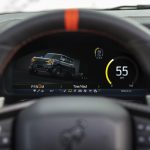 Los modelos base de Bronco Raptor están equipados con asientos de vinil de grado marino Black Onyx y suelo de goma lavable. El interior oscuro está acentuado con salpicaduras de color Code Orange de Ford Performance en la palanca giratoria de los modos G.O.A.T., las rejillas de ventilación del tablero, la red de las puertas, las costuras del guía y el logo de Bronco en el panel de instrumentos, incluso el botón de encendido se ilumina en este color naranja distintivo. Los puntos de contacto, como las agarraderas, el bisel del guía y la palanca de cambios, llevan detalles de fibra de carbono.